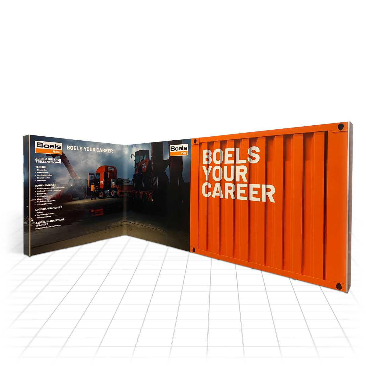 This is a popular option for our customers that want to take the first step into large adaptable modular systems but don’t have the budget flexibility or can’t afford to loose the portability of the smaller back drops they have used in the past.