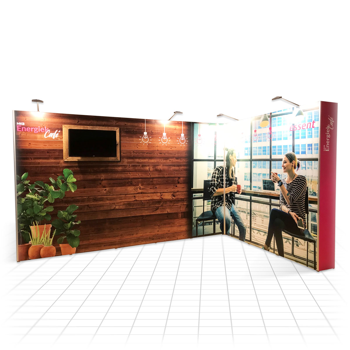 The Impact Modular is an advanced portable system which takes small back-drop system technology and pushes what you can do with the concept to new heights, available with many simple features usually only seen in high end modular modular systems. Monitor holders, end panel lighting, variable heights, private storage areas even frame modifications and fully adaptable graphics that make the display adaptable to future events for years to come.
