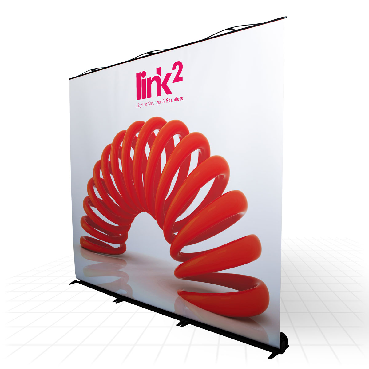 Link² is an exciting next generation of display stand, ideal for exhibitions and events. At last, a portable display stand where the user can easily change graphic panels on-site, and the ability to link stands together.